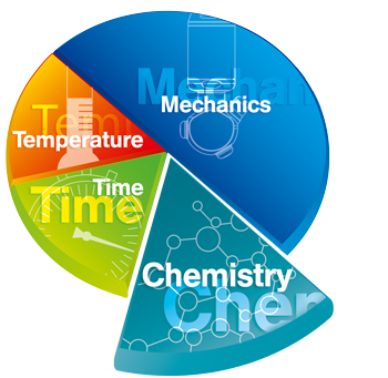 In this chart you can see the portion of the pie for temperature, time and chemistry are all reduced by the effects of rotational nozzles.