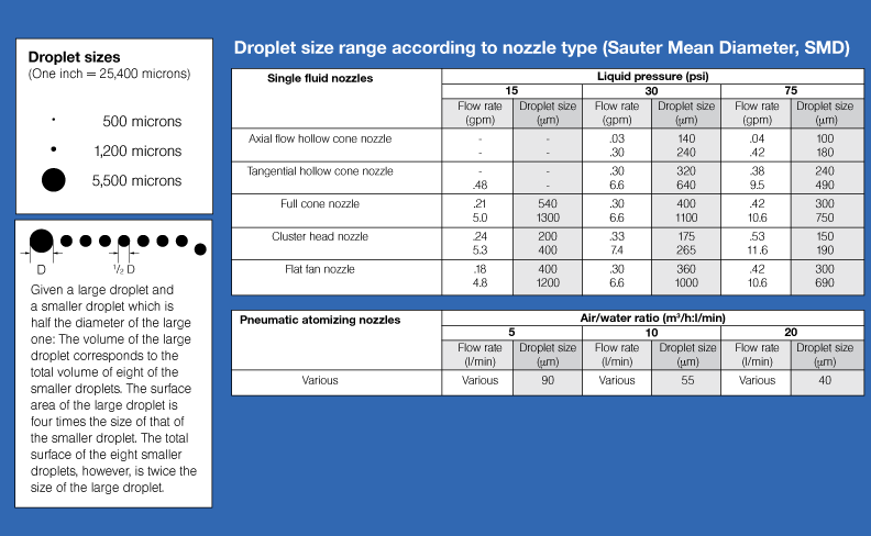 Disinfectants should be atomized as finely as possible, since fine drops increase the reactive surface significantly.