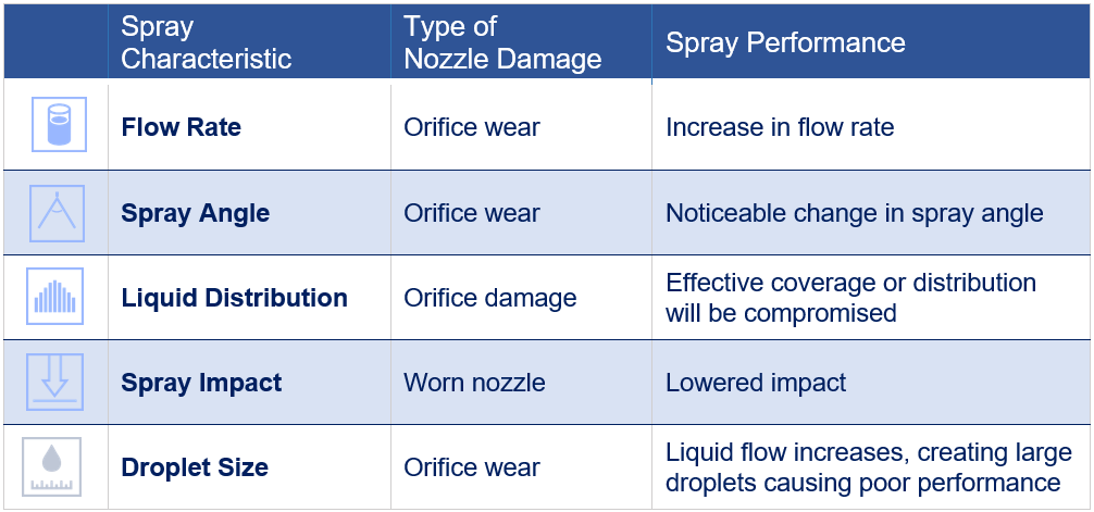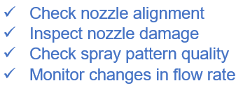 Nozzles should be inspected on a regular basis and be a part of your standard operating procedure. The most common routine nozzle maintenance procedures involve: