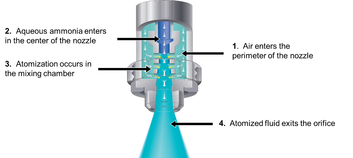 For years, Lechler has specialized in nozzle lances and systems for DeNOx applications to help reduce emissions. In flue gas denitrification, reducing agents such as ammonia water or urea solution are sprayed into the gas stream. The most effective nozzles for selective non-catalytic reductions (SNCR) applications are the Laval twin fluid nozzles.