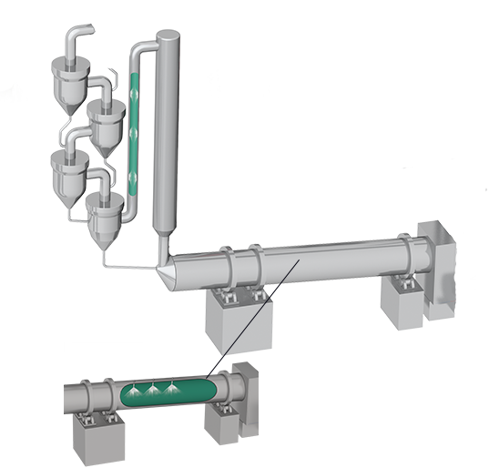 For the non-catalytic reaction, a reagent (mostly aqueous ammonia) is specifically injected in the area of the optimum temperature window of approx. 1,742 - 1,922°F. Exceeding or falling below the temperature window will lead to additional NOx formation or an increase in the NH3 slip. The efficiency is reduced in both cases. In addition to the optimum temperature, parameters such as droplet size and velocity are also of crucial importance. Only with the appropriate nozzle and the right control concept can the droplets penetrate deep enough into the flue gas flow to ensure optimum distribution of the reducing agent in the flue gas flow.