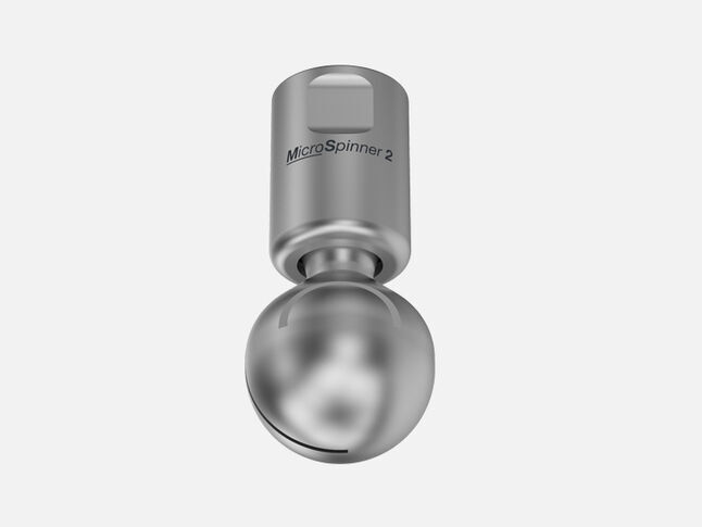 The MicroSpinner 2 has a compact design which allows cleaning in confined spaces. The MicroSpinner 2 is made entirely from stainless steel and designed for use also at high temperatures. It is available with many different flow rates and spray angles.