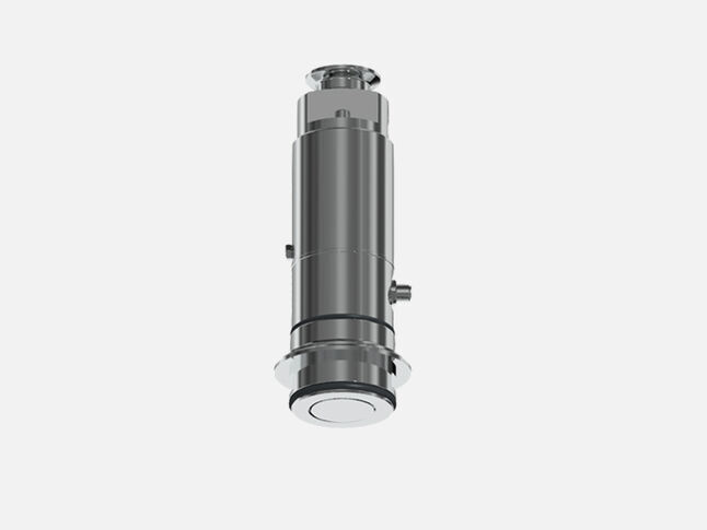 The PopUp Whirly Air Hygienic is designed for the automated cleaning of pipes or ducts. The nozzle is installed flush with the inner wall of the system and extends pneumatically for cleaning. The freely rotating rotor cleans the surrounding surfaces without gaps, then moves back into the nozzle housing and closes tightly.