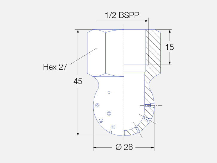 The robust series 540 / 541 pressure washer spray ball has a threaded connection and an especially compact design. They can also be used at high temperatures as well as for the output of steam and air.