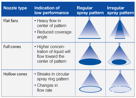 Nozzles should be inspected regularly. Incorporate routine maintenance into your standard operating procedure (SOP). Common inspection tasks include checking nozzle alignment, inspecting nozzle damage, checking spray pattern quality, and monitoring changes in flow rate. Nozzle damage takes many forms, including:
