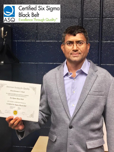 After many evenings and long weekends of studying, Dinesh Patel our VP of Operations, completed his ASQ Certified Six Sigma Black Belt Certification. Congratulations on your accomplishment Dinesh!