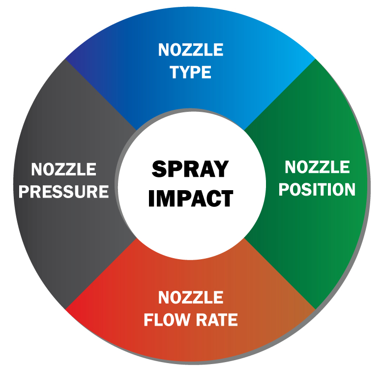 One of many important characteristics of nozzle performance is spray impact. Impact is defined as the impingement (force) of a spray upon its target (surface area). Many factors can influence spray impact and we will identify each one and discuss how nozzle performance can also be affected.