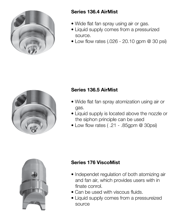 Atomizing nozzles produce very fine droplets, which increase the reactive surface. This is important because a large reactive surface ensures the disinfectant will cover the targeted area. This reduces waste and can save on the amount of media being sprayed to the applied area.